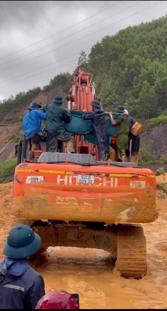 Trước tình hình trên cũng như khả năng điều kiện của Trạm Y tế xã, đồng chí Phùng Văn Nam – Chủ tịch UBND xã – Trưởng Ban chỉ đạo Phòng thủ dân sự xã thống nhất phương án cử lực lượng Công an xã, Dân quân và y tế dùng cáng tạm, khiêng bộ vượt qua những đoạn đường trơn trượt, lầy lội chuyển thai phụ bằng đường bộ để đưa sản phụ ra khu vực có thể tiếp cận xe cứu thương. Có đoạn đường bị sạt lở hàng trăm mét, các đồng chí Công an xã và lực lượng dân quân phối hợp đã chủ động khiêng sản phụ lên xe máy múc đang hoạt động tại khu vực cách đập thủy điện Sông Tranh 2 khoản 2 km để tiếp tục di chuyển băng xe cứu thương của Trung tâm Y tế Khu vực III.